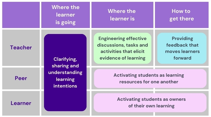 Wiliam and Leahy (2015) translated this definition into a set of evidence-based strategies to support learning. These five strategies capture the complexities of teaching and highlight the critical roles of both teachers and students. They go beyond the misconception that formative assessment is just a gimmick or a technique for demonstrating performance—or worse, for showing progress within a single lesson. The strategies summarised below represent both the direction and the stakeholders involved. In the following posts, I plan to explore each of these in detail.